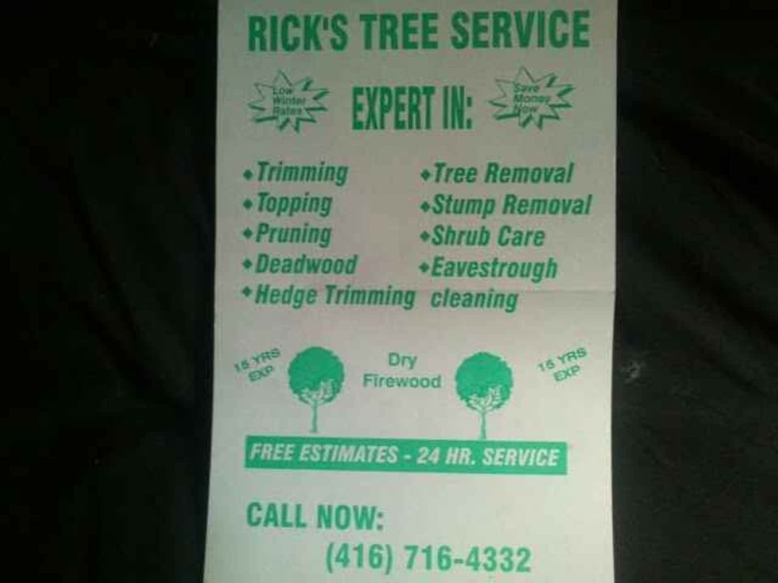 Rick and his team or prompt professional and very polite. Ricks tree service was first mentioned on pissedconsumer on jan 10, 2009 and since then this brand received 23 reviews. I needed to have 2 tree stumps ground.